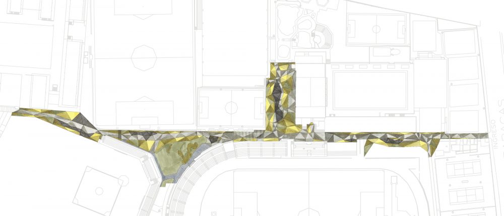 Concebido a partir de la organización de los flujos peatonales generados por el eje de circulación que va desde el ingreso de la Av. La Mar hacia el de la Calle Paracas. A lo largo del recorrido dichos flujos convergen en espacios de permanencia diseñados para el disfrute visual de las actividades deportivas que se dan en al interior del club. Estos espacios públicos promueven las interacciones entre los usuarios.
